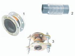 Gummi- (1) oder Edelstahlkompensatoren (2), mit Flansch-, Gewinde- oder Schweißanschlüssen, mit Zugbegrenzung (3), mit Leitrohr, PN 10 - PN 100, DN 10 - DN 1000